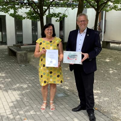 Hohe Auszeichnung für die Stadt Schwandorf, bei der Preisverleihung für den vom Lokalen Bündnis für Familien im Landkreis Schwandorf ausgeschriebenen Wettbewerb „Familienfreundliche Kommune 2022“.