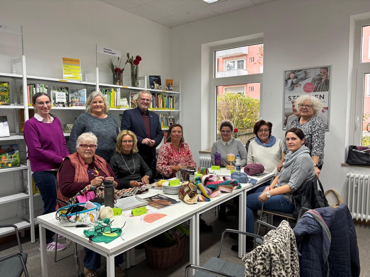 Oberbürgermeister Andreas Feller besucht Strick- und Häkeltreff in der Stadtbibliothek Schwandorf