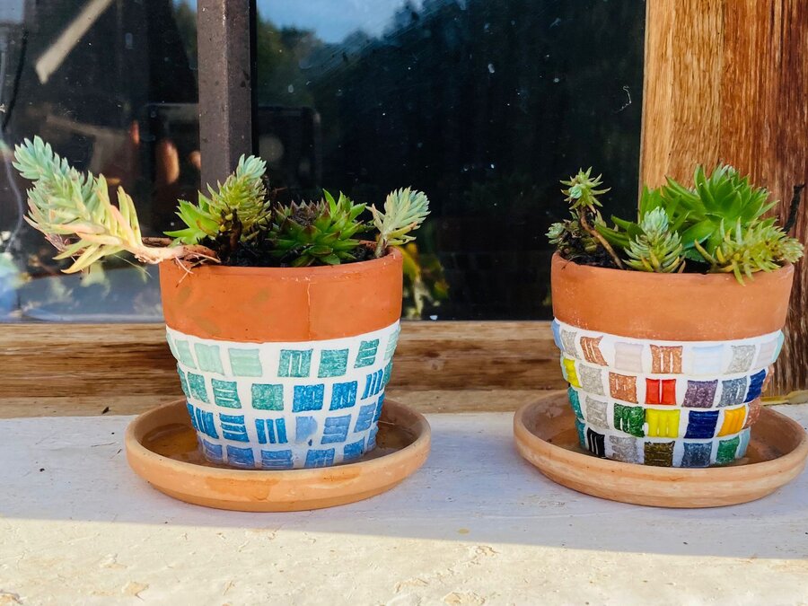 Mosaik-Techniken sind uralt und wurden schon im alten Orient, in Griechenland oder im römischen Reich verwendet. Auch heute noch werden diese kleinen Stein-Teilchen zu Mustern, Bildern oder Deko zusammengeklebt und verfugt. Dieses Mal werden wir kleine Ton-Töpfchen verschönern und bepflanzen!