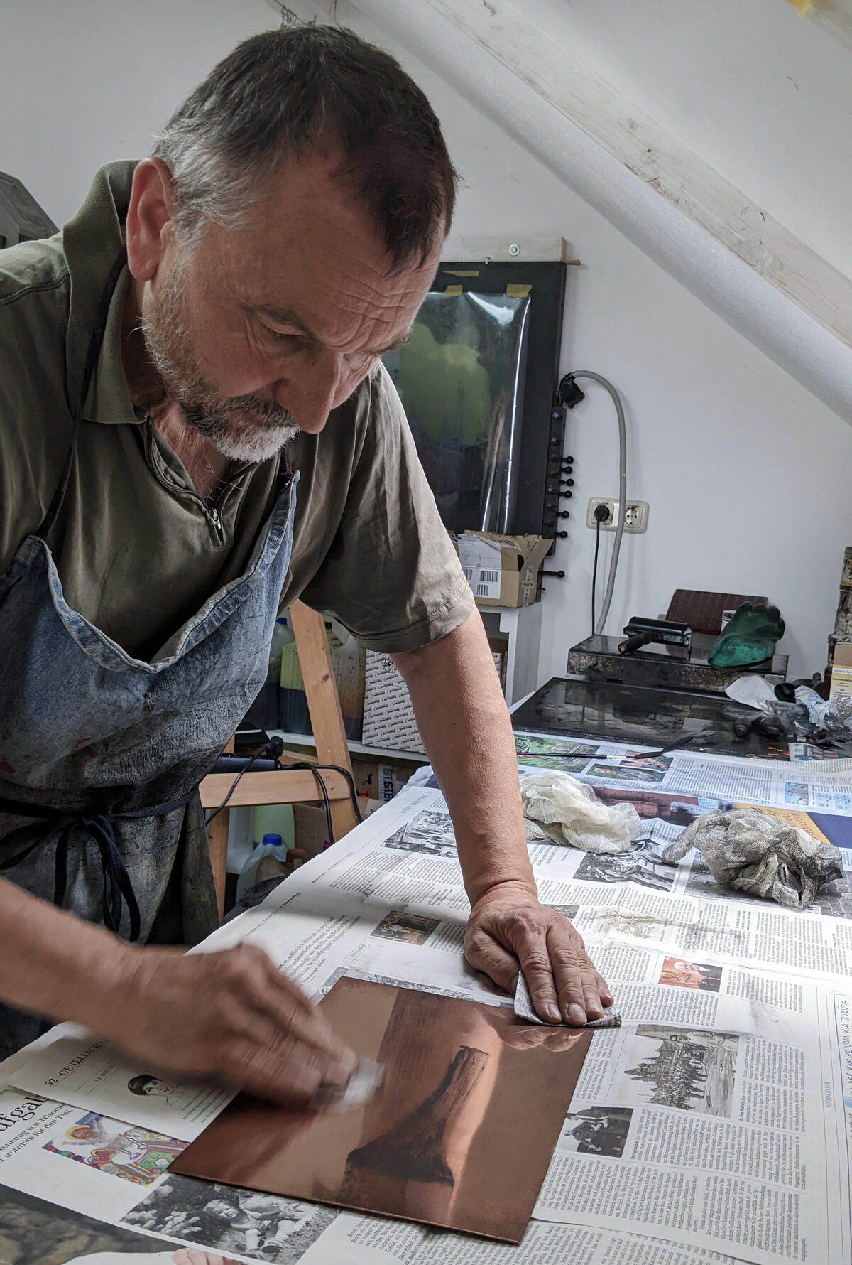 Die Heliogravüre ist eine faszinierende Drucktechnik, bei der eine fotografische Halbtonvorlage auf eine Kupferplatte übertragen und geätzt wird. Welche Arbeitsschritte dazu nötig sind und wie das im Einzelnen funktioniert, wird in diesem Workshop gezeigt.