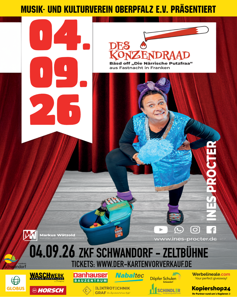 90 Minuten am Stück wischt, schrubbt und poliert die Putzfraa eure Lachmuskeln und Gehirnwindungen in den originalen dazugehörigen Bühnen-Outfits aus der jeweiligen Livesendung, DES Quotenrenners des BR, Fastnacht in Franken. Und weils halt a nur des Bäsde sei soll, hessts: Des Konzendraad.